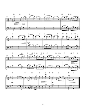 * Since the viola generally has the melody, the pieces can also be played by solo viola, and guitar chords are included.