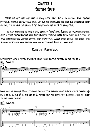 This book and accompanying audio provide instruction and playable examples for guitarists looking to get into the sounds rooted in classic country music, as well as more modern approaches to the genre. Rhythm playing is explored through shuffle patterns, Travis picking and trucking riffs. Lead playing is approached through double stop licks, steel bends, and single note runs. Short examples are presented in each chapter and then combined in longer etudes with chord changes, ready for use in your own solos!