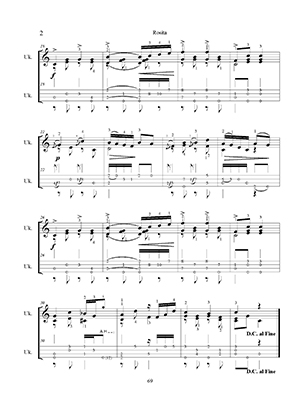 The book includes 38 of Tárrega’s compositions in standard notation and tablature for solo ukulele. Thirty of these are Tárrega’s preludes from his brilliant concert repertoire. Among the pieces are “Lágrima” and “Endecha a Oremus”. Other selections include his beautiful “Gran Vals” and “Recuerdos de la Alhambra”.