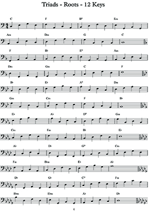 7th Chords-Key of C-Sub 3, 2 notes per string