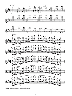 We believe this to be the most efficient, thorough, and clearly laid out violin scale book available. Fingerings for the scales are directly applicable to repertoire and are not merely repetitious patterns designed for easy memorization. All scales are completely written to help develop reading skills, making them appropriate for both intermediate and advanced students.