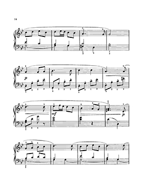 Collection of Tchaikowsky compositions arranged for piano. Including: Waltz of the Flowers, Russian Song, Serenade Melancolique, Funeral March for a Doll, Old French Song, and Morning Prayer.