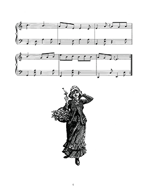 A slow, lilting minor key jig with melodic ornaments, harmonics and a simple, rhythmic left hand accompaniment. In the key of A minor.