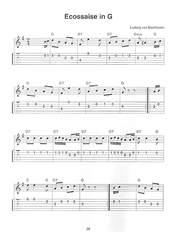 This collection presents 99 popular classical themes arranged as single-note melodies for guitar with chord accompaniment. Each piece is presented in standard notation and tablature, followed by chord diagrams and a suggested strumming pattern. This book will serve as an introduction to the classics for the beginning guitarist and a good source for the more advanced player who needs to supplement his or her repertoire with "fake book"-style arrangements of well-known classical themes. The songs range from easy to quite challenging and represent a wide variety of styles.