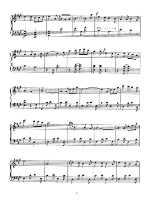 A sprightly Irish jig with contemporary harmonies, modal interludes and a recurring left-hand pattern. In A major with 3 pre-set G naturals.