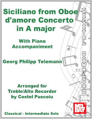 An intermediate-level Treble/Alto Recorder solo with piano accompaniment that works great for recitals, contests, or as a performance practice. Includes access to audio of the piano accompaniment.