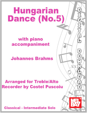 An intermediate-level Treble/Alto Recorder solo with piano accompaniment that works great for recitals, contests, or as a performance practice. Includes access to audio of the piano accompaniment.