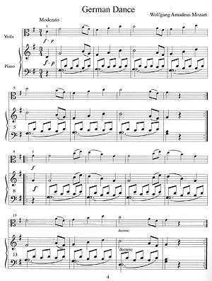 This volume includes music from Mozart's Viennese Sonatas as well as other incidental works. Titles include: German Dance; Andante; Glockenspiel; Menuetto and Trio; and Rondo. All of the pieces are played in first position in easy keys with few accidentals. Features a "pull-out" viola part with essential bowings and fingerings.
