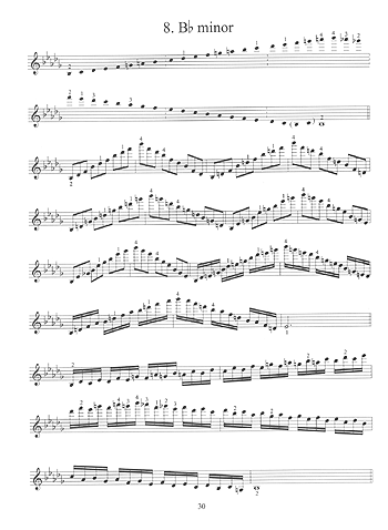 Designed to help people master all 24 major and minor scales. In this book, all the violin scales are organized in a simple, practical, and easy-to-learn format. Then all the fingerings of the single-stop scales are classified into only a few basic patterns. When practicing, violinists can study these fingering patterns first and then use them to play all 24 scales easily. Finally, all the fingerings of the double-stop scales are also re-edited to make them as simple as possible. With this approach, the process of learning violin scales is much easier than before.