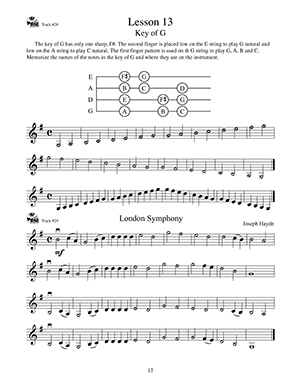 • Includes scales in A, D, G, and C; slurs, accents,and staccato bowing.