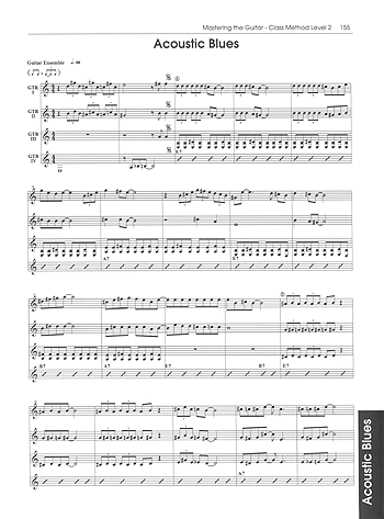 Mastering the Guitar Class Method is a remarkably innovative new approach to teaching guitar in class settings. This volume begins with in-depth reviews of the keys of C, G, Am, and Em presented in Volume 1. New material includes minor 7 and major 7 chords, triplets, swing rhythm, the slide, 6/8 time, 6/8 and 12/8 strums, harmonics, suspended chords, moveable power chords, and the keys of D, F and Dm. Contains comprehensive sections on pentatonic scales, improvisation, the hammer-on and pull-off techniques, the Travis fingerpicking style, barre chords, two-part harmony, block chords, fingerpicking in 3/4 time, and fingerpicking solos. As a special feature the book includes numerous guitar ensemble pieces suitable for recital or concert performance. This new method meets current MENC national standards for music education. This volume may be used as a follow-up to either edition of Mastering the Guitar Class Method Level 1. Includes access to online audio.