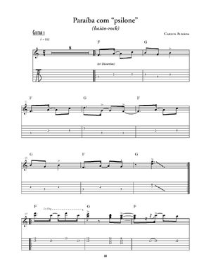 The main goal of this book is to present what could be called Brazilian guitar today, working melodically, harmonically, and rhythmically in some of the most important Brazilian musical styles. We have chosen to use two electric guitars in these arrangements (but in the song “Violeiros e Cantadores”, which is for solo electric guitar), so that the essential functions of the guitar - rhythm, melody, and harmony - might be expressed in the clearest and best way in each different style.